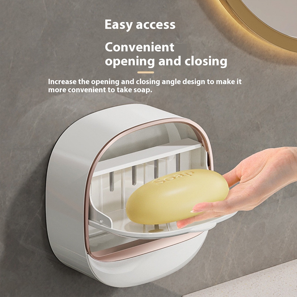 Porte-savon mural moderne et élégant, best-seller, boîte de rangement à savon pliable de luxe avec design de drainage et boucle adhésive