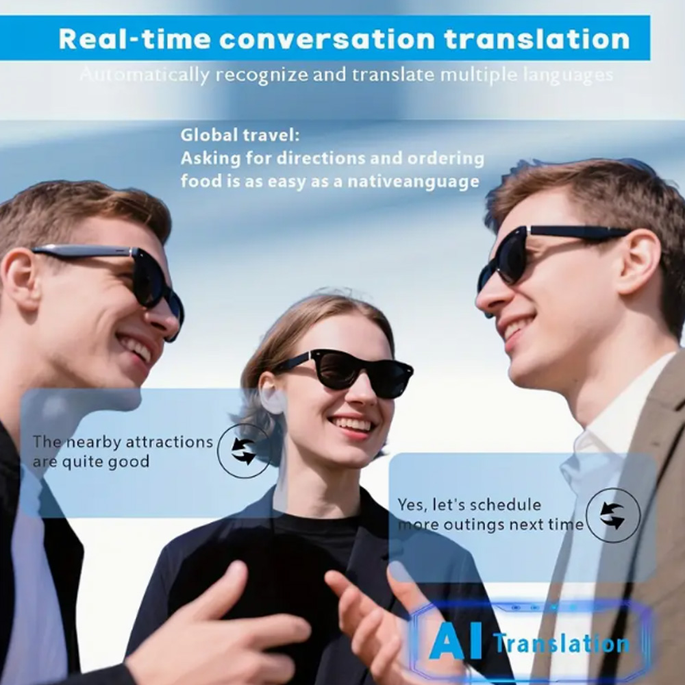 SENBONO E13 Smart Translator Lunettes Blue Tooth Audio Lunettes de soleil Anti-UV Polarisé Appel Musique AI Lunettes d'extérieur-Bleu